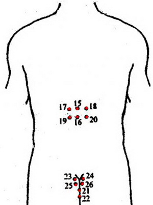 Посмотрите точки постановки пиявок на фото, где показаны основные локализации для эффективного воздействия с помощью гирудотерапии: