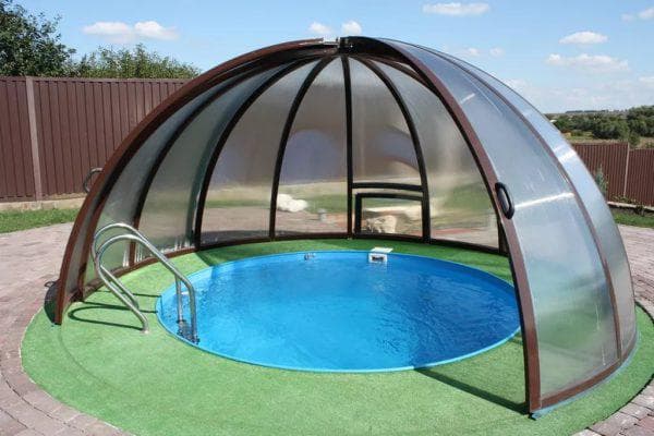 И хотя мобильные конструкции имеют легкий вес, они не могу выдержать большие нагрузки и изменения погодных условий. Так как навесы выполняют из абсолютно подвижных секций дугообразной формы, то их открытие может происходить с любой стороны. А вот какой бассейн для дачи морозостойкий самый лучший, и как его подобрать, указано в данной