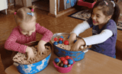 - манипулирование крупами, фасолью (пересыпание из одной пластиковой баночки в другую, счет фасолин, рисование на крупе);